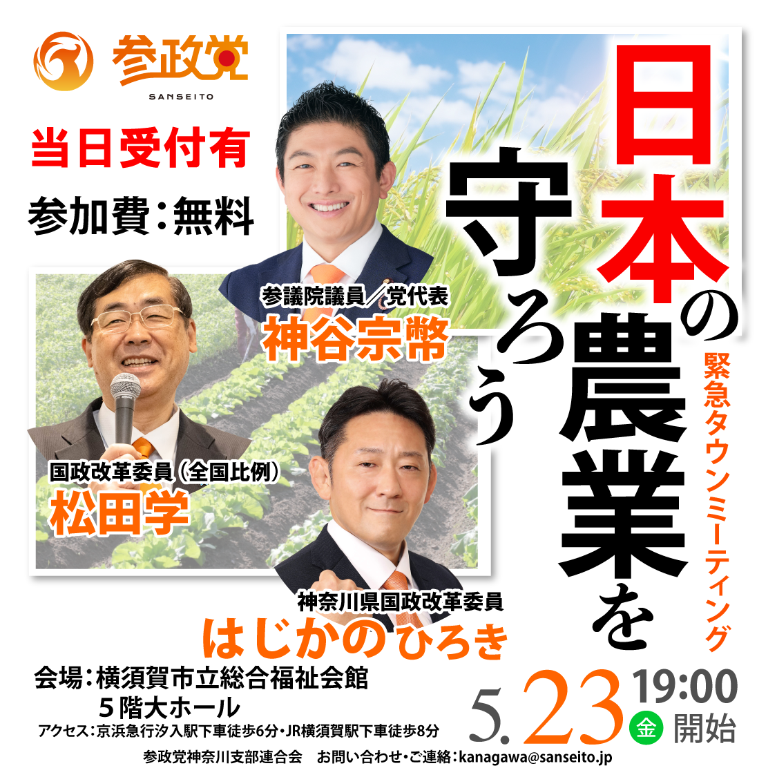 党代表の神谷宗幣が農業をテーマに講演を行います。